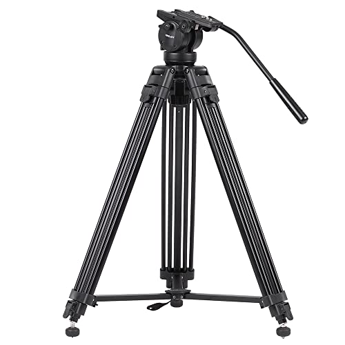 OUNA - طقم حامل ثلاثي القوائم احترافي من خليط من الألومنيوم والماغنيسيوم من اونا، موديل VT-2500، رأس كروي سائل بانوراما بزاوية 360 درجة لكاميرا دي اس ال ار ومسجل فيديو دي في، اقصى ارتفاع 1.5 م، أقصى حمولة 15