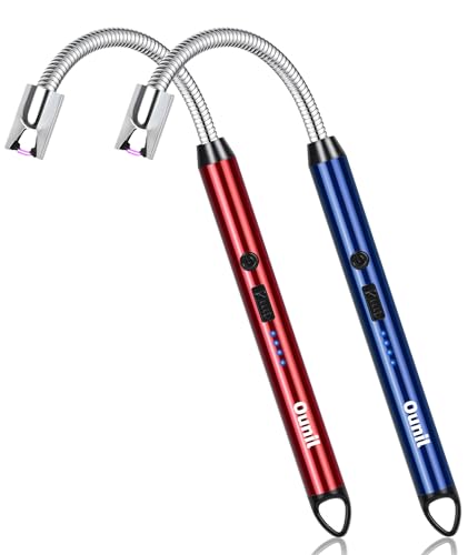ounil - ولاعة شموع كهربائية قابلة لإعادة الشحن بمنفذ USB نوع سي مقاومة للرياح بدون لهب وشاشة ليد مناسبة للشموع الخفيفة والألعاب النارية والشواء والتخييم من اونيل، 2 قطعة (عنق مرن 360° أزرق/أحمر)