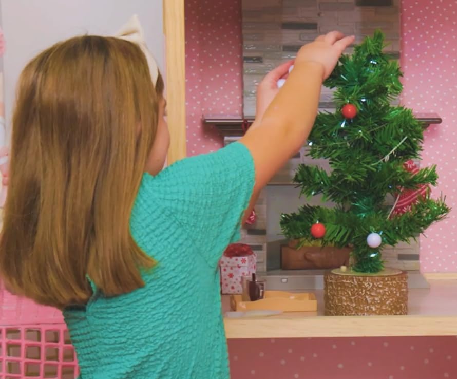 - تتضمن: شجرة مع سلسلة أضواء علوية على شكل نجمة مرفقة و9 حلي زينة (تُباع العرائس بشكل منفصل)