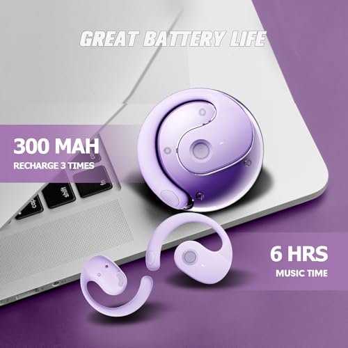 Xmenha - سماعات أذن مفتوحة توضع خارج الأذن، سماعات بلوتوث لاسلكية معلقة فوق الأذن، سماعات أذن مفتوحة خارج الأذن، سماعات أذن بخاصية توصيل الهواء العظمي، أرجواني