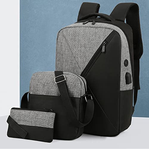 Honeytecs - مجموعة شنطة ظهر للاستخدام الخارجي، شنطة عمل للسفر، شنطة كتف للمدرسة بسعة كبيرة مع منفذ شحن USB للمراهقين والبالغين (مجموعة من 3 قطع)