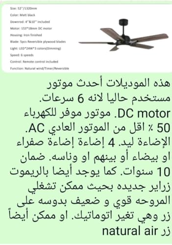 Generic - مروحة سقف، أسود، عدد المنافذ: 5، 100 واط