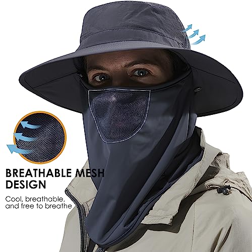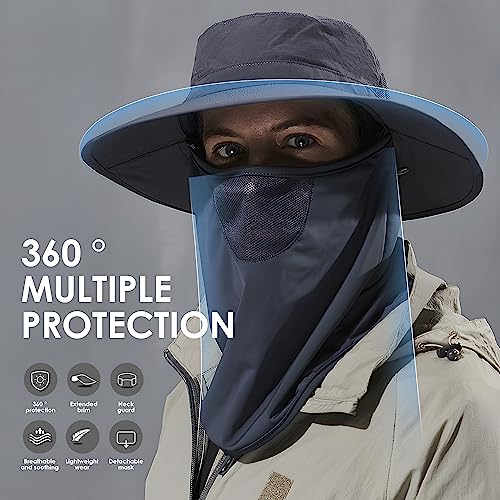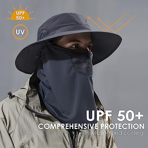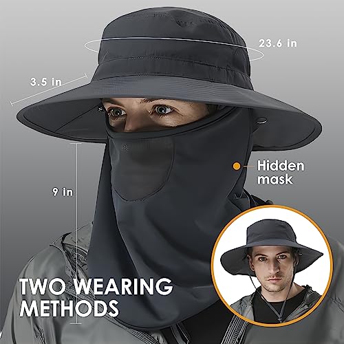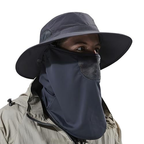 KOFOJN - طاقية صيد خارجية للجنسين، طاقية واقية من الشمس بعامل حماية من الاشعة فوق البنفسجية 50+ مع غطاء رقبة مخفي للمشي لمسافات طويلة والتسلق