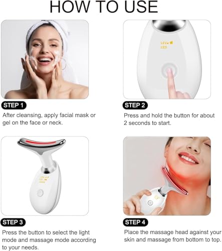 - مدلك الوجه متعدد الوظائف: يتميز جهاز تدليك الوجه المضاد للتجاعيد هذا بسبعة أوضاع إضاءة LED، وثلاثة مستويات اهتزاز قابلة للتعديل، وتيار دقيق (EMS)، وإعداد درجة حرارة ثابتة 45 درجة مئوية، وتدليك اهتزاز عالي التردد. يعزز التدليك المادي امتصاص العناية بالبشرة، مما يجعل الأقنعة واللوشن والأمصال تعمل بشكل أسرع وأكثر فعالية.