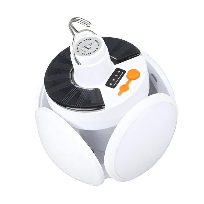 - يتميز مصباح التخييم الشمسي هذا بمرونة في الشحن: حيث يعتمد على الطاقة الشمسية بشكل كامل خلال النهار، ويمكنك شحنه أيضًا بمنفذ USB عند الحاجة. وهذا يضمن إضاءة موثوقة دون الاعتماد على الكهرباء فقط.