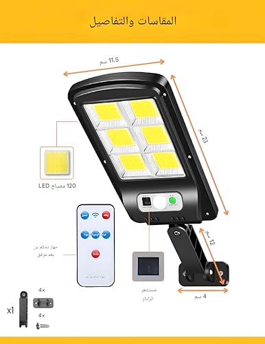 - لا يحتاج إلى تركيب كهربائي - ببساطة قم بتركيبه وتشغيله؛ يضمن البطارية المدمجة ونظام الشحن الشمسي التشغيل التلقائي ليلاً ونهارًا.