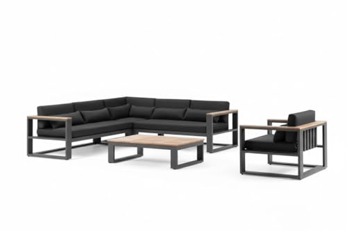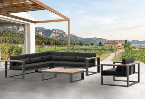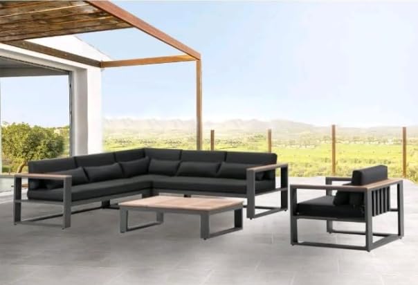 Generic - طقم اريكة زاوية معدنية للاماكن الخارجية مع كرسي وطاولة قهوة، وسائد سوداء، قماش مقاوم للماء، اريكة 2 × 2.5 متر، كرسي 60 × 60 سم، طاولة 60 × 90 سم