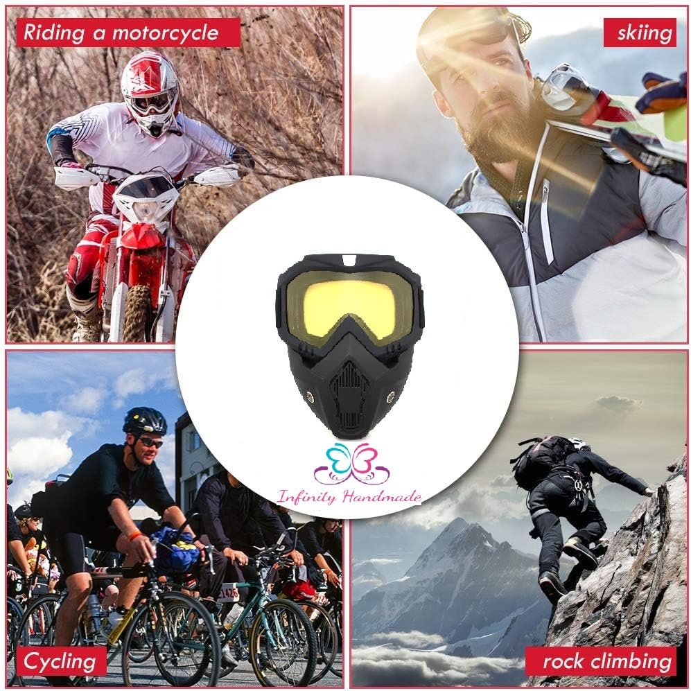 Generic - نظارة موتوسيكل خارجية للطرق الوعرة بتصميم خوذة مقاومة للرياح مع قناع للتزلج وكافيه رايسر حماية من الأشعة فوق البنفسجية من البائع انفينيتي هاند ميد، لون أصفر