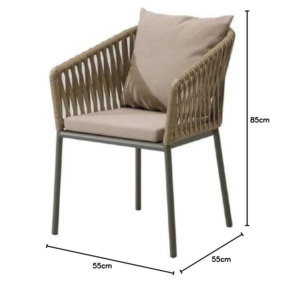Generic - كرسي طعام للفناء الخارجي، تصميم حبل منسوج، إطار معدني، وسائد بيج