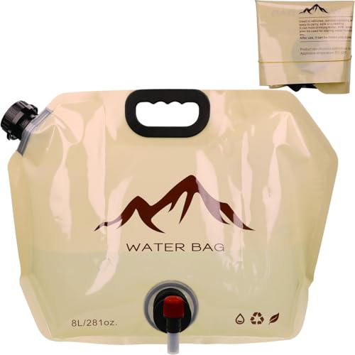 Generic - حقيبة مياه محمولة قابلة للطي للاستخدام الخارجي، حقيبة تخزين مياه قابلة للطي سعة 8 لتر مع صنبور قابل للتعديل، حقيبة حاوية مياه للتخييم بسعة كبيرة (كاكي)