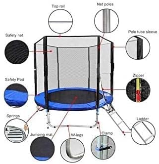 - 1. الترامبولين مقاس 2.4 م بدون سلم، يوجد سلم مع المقاسات الأخرى.
