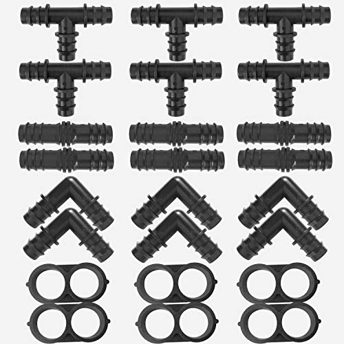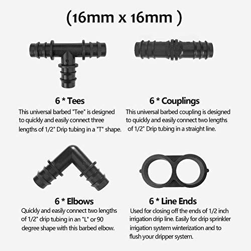 OUTFANDIA - تركيبات ري بالتنقيط 1.3 سم (16 ملم .520 ID)، 6 وصلات مسننة/6 وصلات أنابيب/6 زوايا/6 وصلات طرفية لإغلاق الأنابيب - موصلات مسننة ومتوافقة مع أنظمة الري بالتنقيط أو الرشاشات من اوت فانديا، 24 قطعة