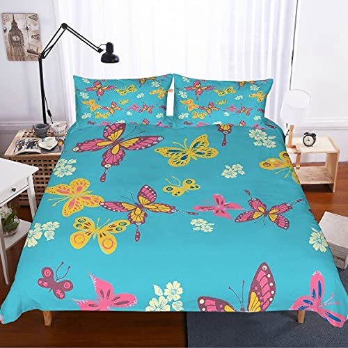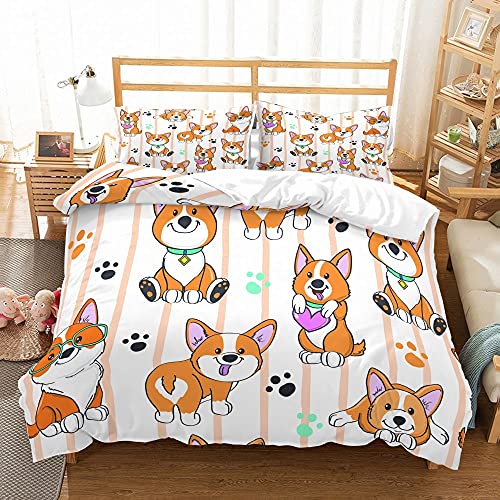Outfit Factory - أطقم سرير - مجموعة ملايات سرير من سلسلة لوفلي انيمالز، غطاء لحاف وكيس مخدة من المايكروفايبر بمقاس كوين مزدوج للأولاد والبنات والأطفال، ديكور للغرفة (لون 4 1 كيس مخدة 50 × 75 سم)، مطبوع بصور حيوانات