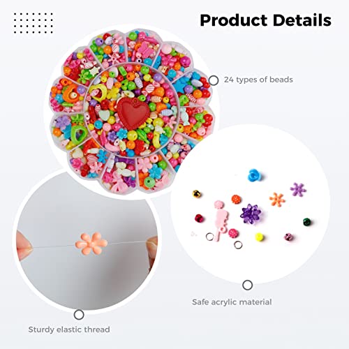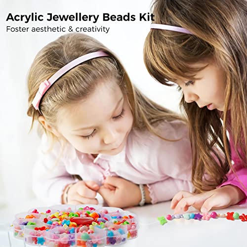 Outgeek - اوت جيك مجموعة خرز من 490 قطعة: لصنع المجوهرات والحرف اليدوية كبس للقلائد والاساور للاطفال اكريليك ملون للحرف مع اكسسوارات قطعة