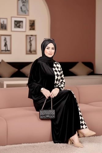 Generic - حجاب قطيفة متدلي - تصميم عصري محتشم مع اكمام - اسدال شتوي ناعم وفاخر للمناسبات والسهرات حتى 90 كجم، مقاس واحد