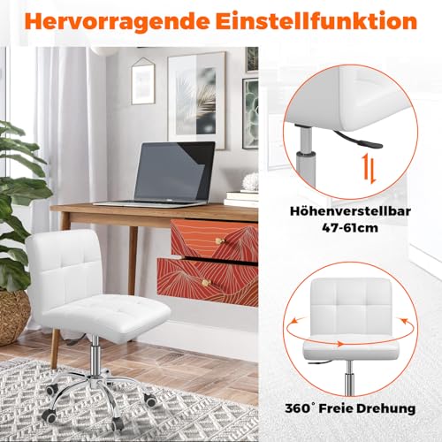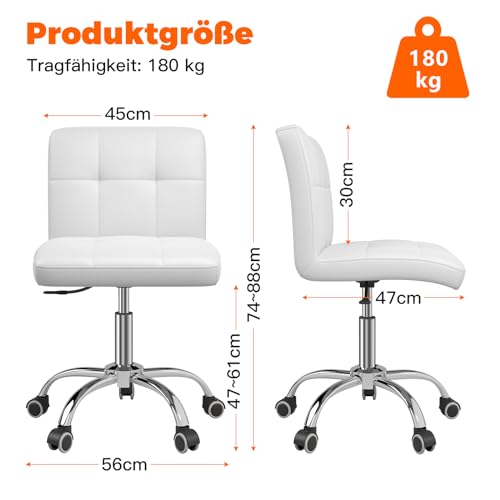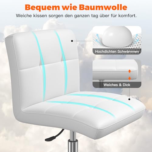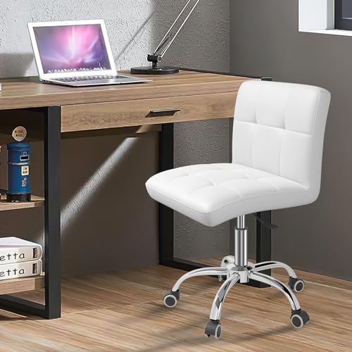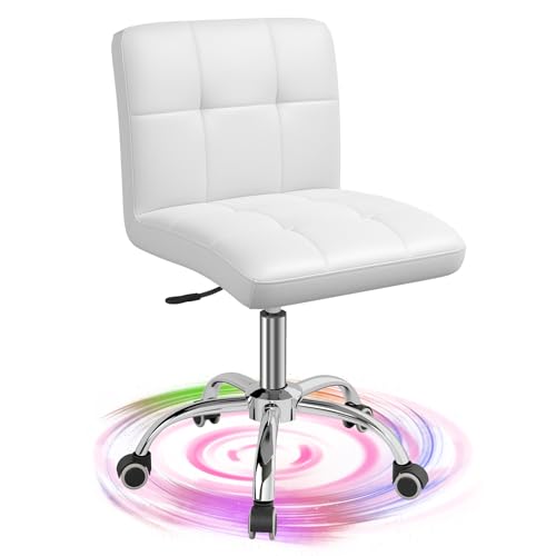 OUTMASTER - كرسي مكتب 360 درجة من اوتماستر متحرك البولي يوريثين قابل للتعديل بمسند ظهر لمصففي الشعر والمكتب والمنزل والكمبيوتر ودوران وبدون اذرع أبيض للأطفال/طاولة المكياج/كرسي