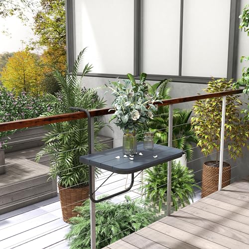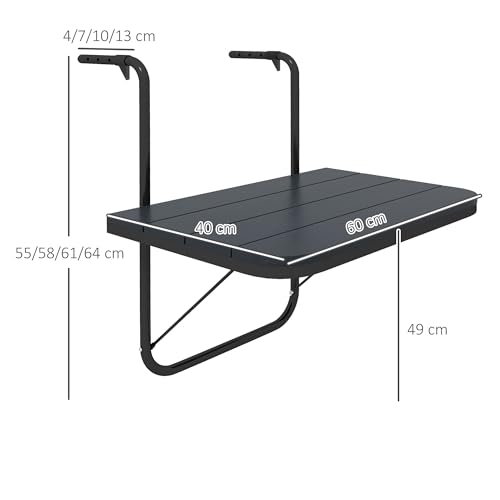 Outsunny - طاولة شرفة للتعليق من اوتسوني معلقة للشرفة قابلة للطي بارتفاع قابل للتعديل في 4 اتجاهات حتى 25 كجم للحديقة ألومنيوم 60 × 40 سم أسود