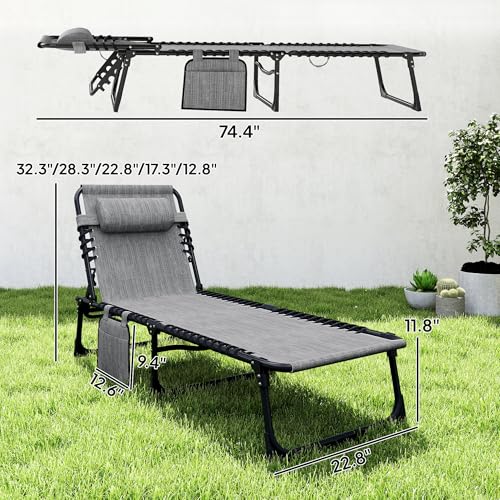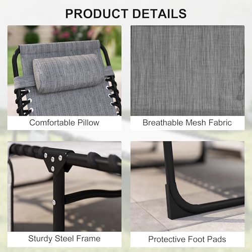 Outsunny - اوتسوني كرسي استرخاء قابل للامالة، كرسي استرخاء محمول للشمس، سرير تخييم قابل للطي، مع مسند ظهر قابل للتعديل ووسادة قابلة للازالة، للفناء والحديقة والشاطئ، رمادي