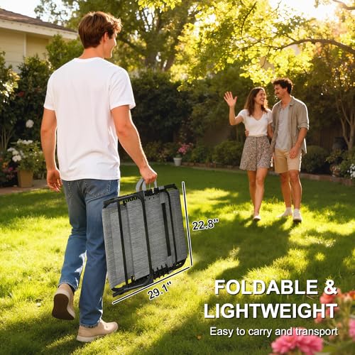 - تصميم قابل للطي: يتميز كرسي الاسترخاء الخارجي هذا بتصميم قابل للطي لسهولة النقل والتخزين المدمج عند عدم الاستخدام؛ مثالي للفناء وجانب حمام السباحة والسطح.