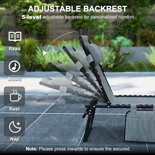 - كرسي استرخاء خارجي قابل للتعديل: يمكن تثبيت مسند الظهر القابل للتعديل على كراسي الاسترخاء بجانب حمام السباحة في مكانه على خمسة مستويات مختلفة للعثور على زاوية الاسترخاء المثلى.