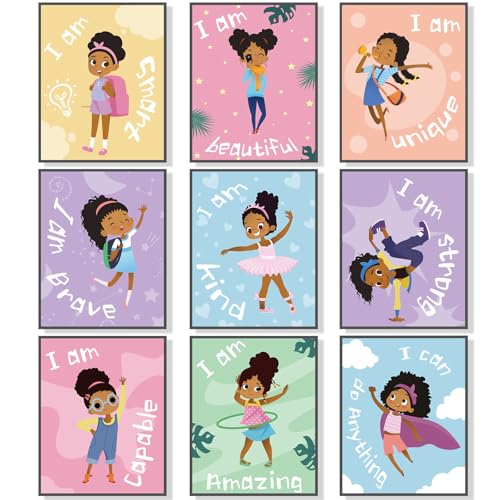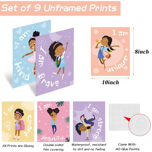 - محتويات العبوة: 9 قطع من ملصقات فتاة سمراء تحفيزية للحائط؛ كل لوحة فنية إيجابية لكل فتاة صغيرة مختلفة عن الأخري، وكل ملصق يأتي بمقاس 8 × 10 بوصة، وهو المقاس المناسب لك لتزيين غرفة الفتيات، مما سيجلب لك تأثيرات بصرية قوية.