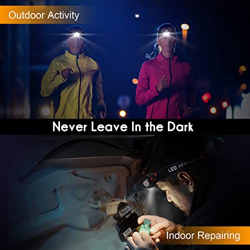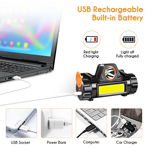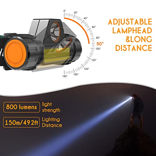 Outway - مصباح يدوي للرأس قابل لإعادة الشحن بمنفذ USB، فائق السطوع 800 لومن بوضعين قابلين للتعديل وخفيف لوزن، مصباح مقاوم للماء للجري والتخييم وصيد الأسماك والأماكن الخارجية وغرفة التخزين من اوت واي