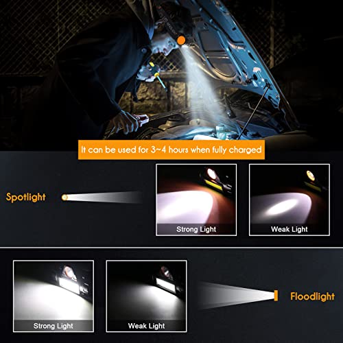 - 【مصدر إضاءة مزدوج】وضعان للمصباح الأمامي: ضوء كشاف وضوء فائق. طالما أنك تضغط برفق على زر التشغيل، يمكنك ضبط الوضع بسهولة، ويمكن أن تلبي الإضاءة مختلفة الأوضاع احتياجات الإضاءة المختلفة.