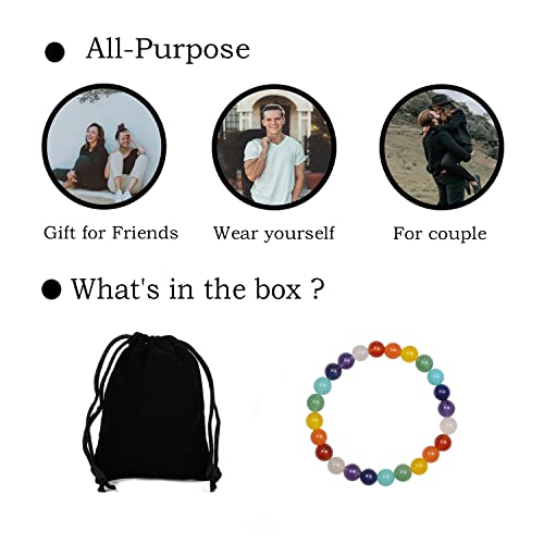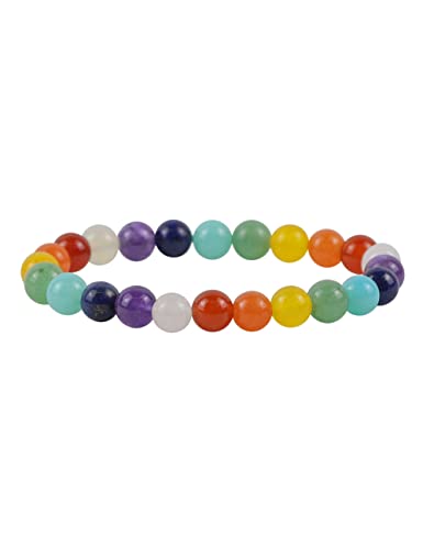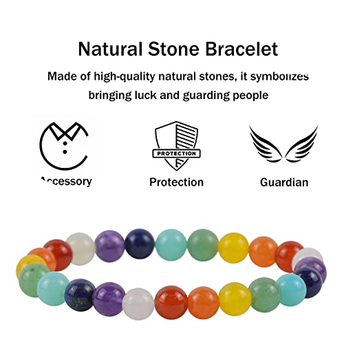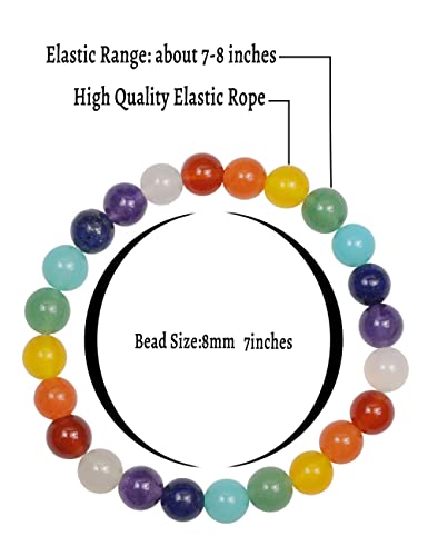 Ouubuuy - سوار احجار كريمة طبيعية 8 ملم خرز دائري من كريستال ريكي العلاجي لجذب الطاقة وتجديدها مرن قابل للتمدد يمكن تقديمه كهدية زينة بطول 7 بوصة inches للنساء