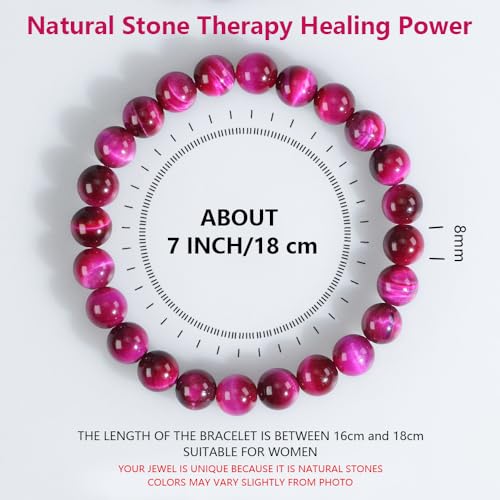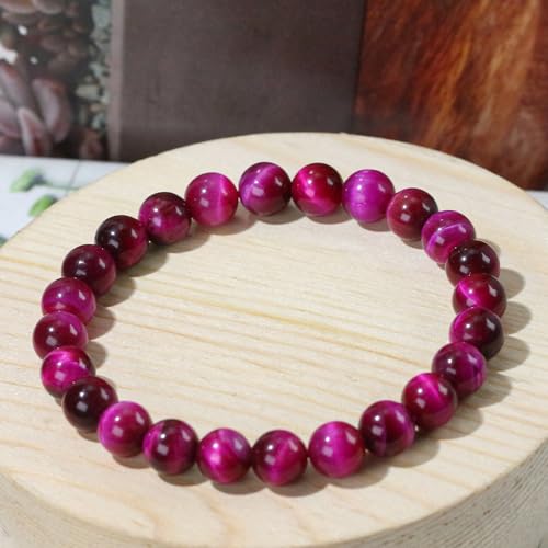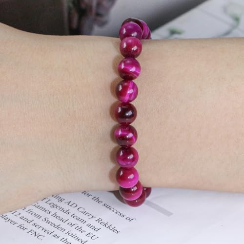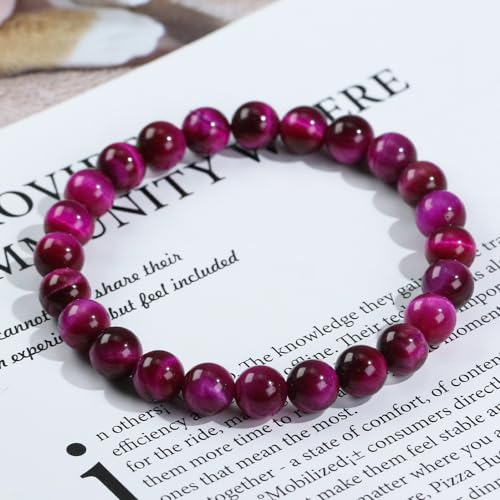 Ouubuuy - اوبووي سوار خرز كريستال من حجر عين النمر الوردي 8 ملم الاحجار الكريمة الطبيعية علاجي للبنات والنساء هدايا عيد الام