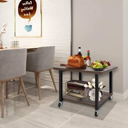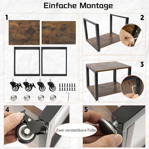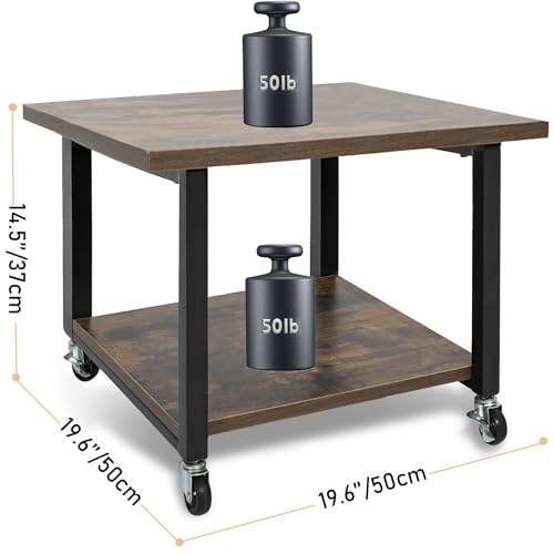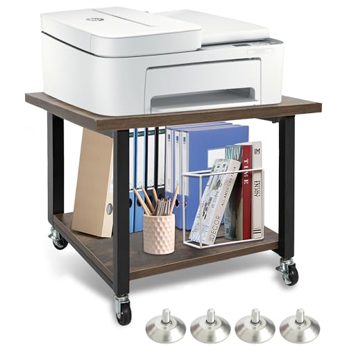 OUUTMEE - طاولة طابعة، حامل طابعة مع ارجل قابلة للتعديل وعجلات قابلة للقفل، طبقتين 50 × 50 × 37 سم