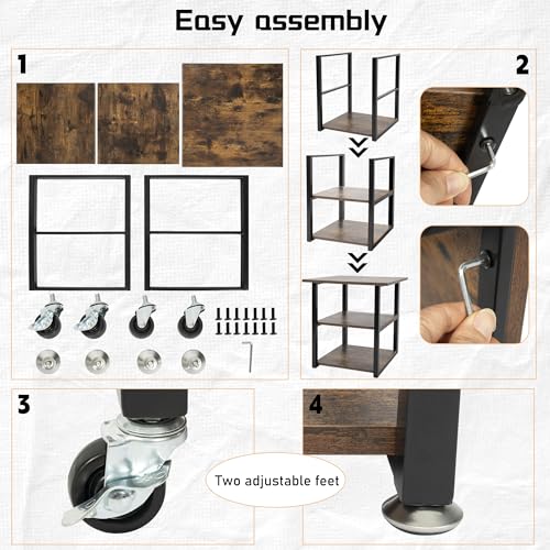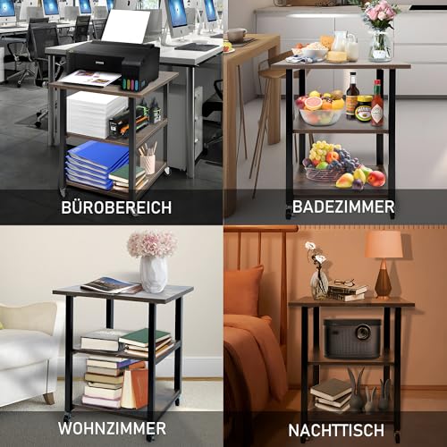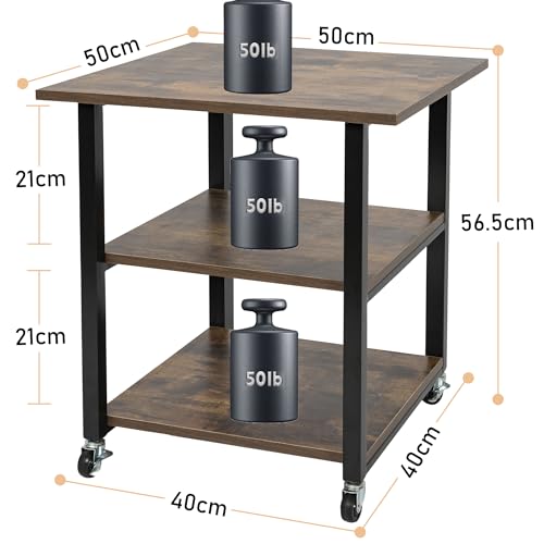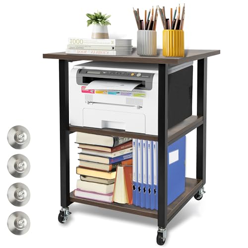 OUUTMEE - طاولة طابعة، حامل طابعة مع ارجل قابلة للتعديل وعجلات قابلة للقفل، 3 طبقات 40 × 40 × 56.5 سم