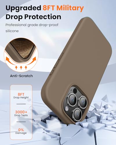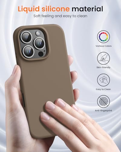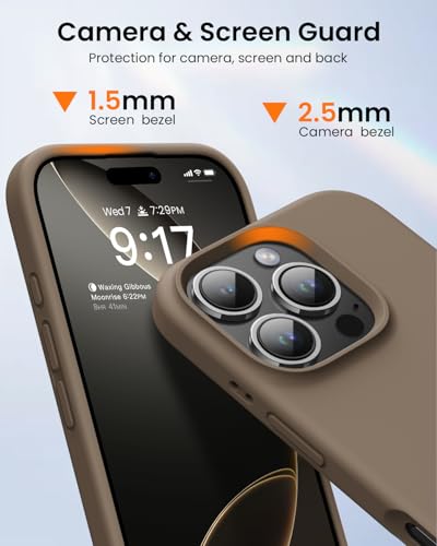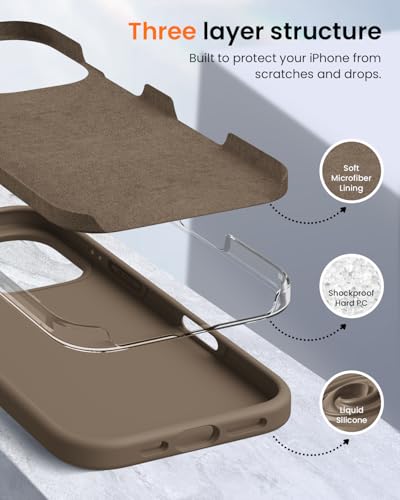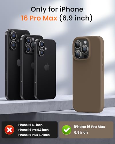 OuXul - جراب حماية رفيع من السيليكون السائل مع [بطانة ناعمة مضادة للخدش] بحماية كاملة من 3 طبقات وتصميم مضاد للصدمات لموبايل آيفون 16 برو ماكس مقاس 6.9 بوصة من اووكسول (لون بني فاتح)