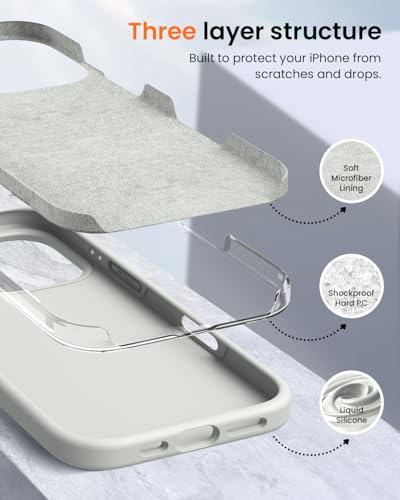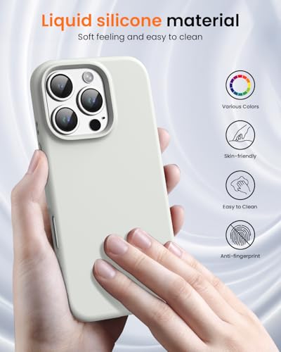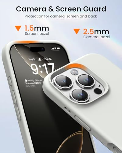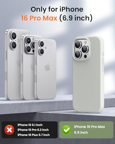 OuXul - جراب حماية لموبايل آيفون 16 برو ماكس مقاس 6.9 بوصة من اووكسول، رفيع من السيليكون السائل مع [بطانة ناعمة من المايكروفيبر مضادة للخدش] حماية كاملة من 3 طبقات (لون أبيض (Antique White))