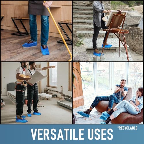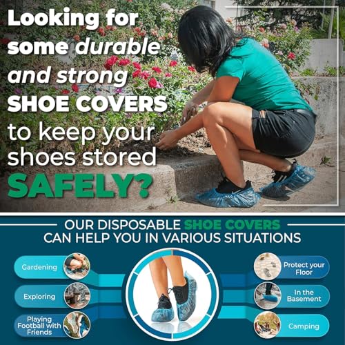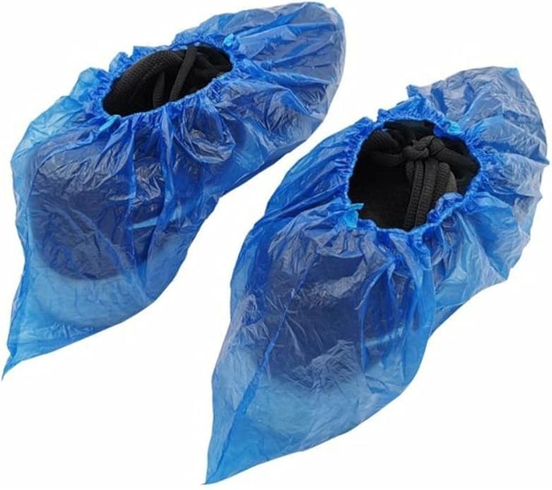 OVA - أغطية أحذية للاستعمال مرة واحدة من اوفا، واقيات أحذية وبوتات طويلة بلاستيكية مقاومة للماء، أغطية أحذية متينة مانعة للانزلاق للاستخدام في المنزل والعمل والسفر والمهام الخارجية، عبوة 100 قطعة (50 زوج)