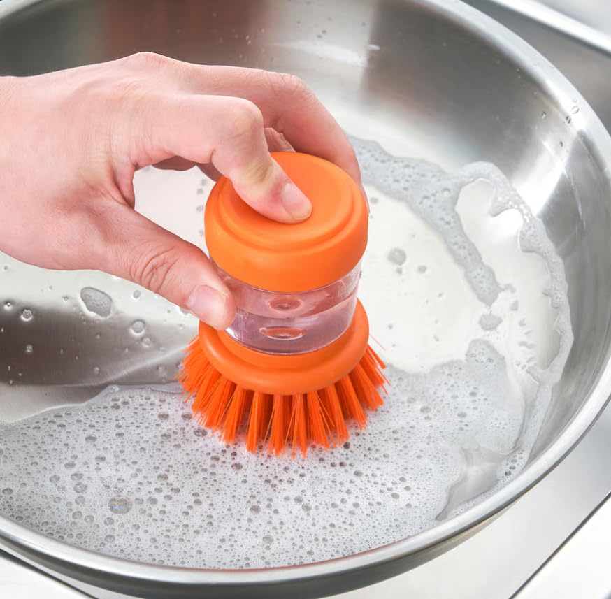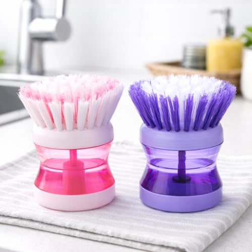 OVA - فرشاة تنظيف مع موزع صابون مدمج، قطعة واحدة، تصميم متين وقابل لإعادة الاستخدام، بألوان متنوعة للاستخدام اليومي في التنظيف من اوفا