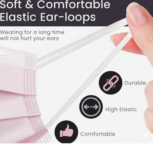 - مقاس محكم: مصمم ليناسب معظم البالغين بشكل مريح، مع حلقات أذن مرنة وشكل محيطي لتغطية أفضل للأنف والفم.