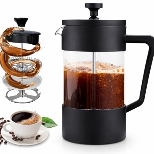 OVA - او في اي ماكينة تحضير القهوة الفرنسية بالضغط، ماكينة تحضير القهوة والشاي الزجاجية المقاومة للحرارة مع مقبض مريح، ماكينة تحضير القهوة اليدوية للمنزل والمكتب.