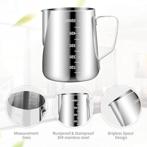 OVA - شفشق خفق لبن من الفولاذ المقاوم للصدأ، إبريق تبخير إسبريسو للاتيه والكابتشينو والقهوة، أدوات باريستا، اكسسوارات ماكينة تحضير قهوة متينة، كوب احترافي لأداة خفق اللبن من اوفا (550 مل)