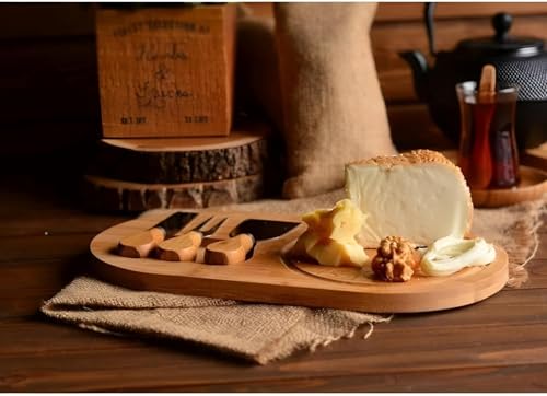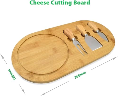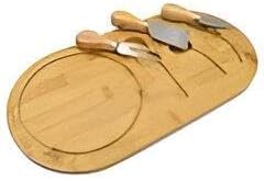 Generic - طقم لوح تقديم وتقطيع الجبن بيضاوي من الخيزران مع ثلاثة سكاكين عملية 35 سم، حل بسيط وانيق للمطابخ المنزلية والاستخدام اليومي والاستضافة الودية