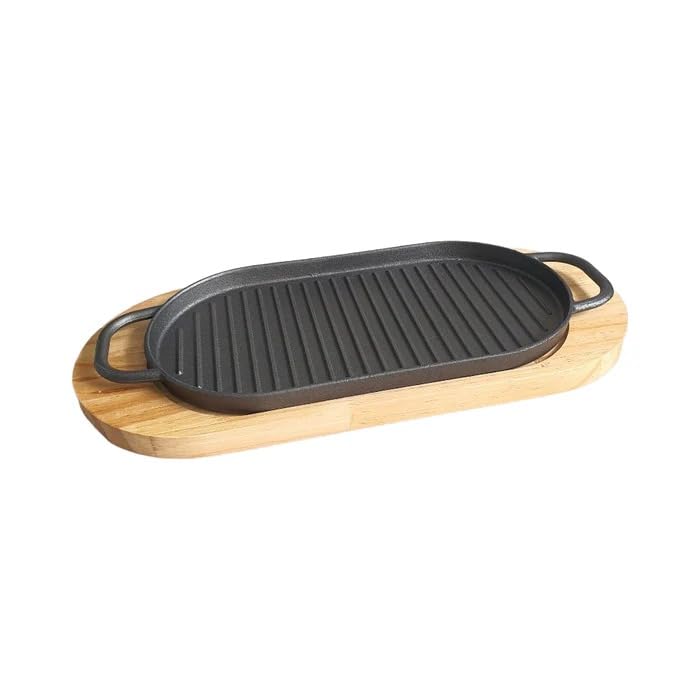 Generic - جريل زهر بيضاوي بيدين - لإعداد المشويات بطريقة احترافية اللذيذة 🍢🍖🔥💯 ذو قاعدة خشبية سهلة الحمل والتقديم المثالي لأصناف المفضلة مثل اللح - من جينيريك