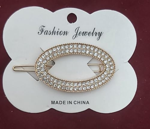 Generic - كلبسة شعر بيضاوية مزينة بفصوص لامعة