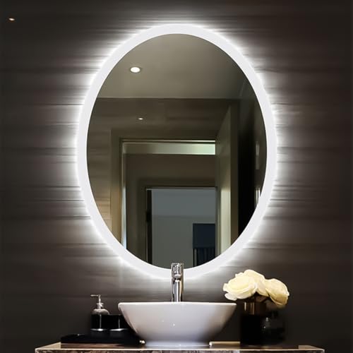 Generic - مراية بيضاوية بإضاءة ليد بيضاء بحجم 80 × 60 سم - مراية حمام حديثة مضيئة تثبت على الحائط بإضاءة ساطعة، مراية تسريحة أنيقة لغرفة النوم ومنطقة ارتداء الملابس