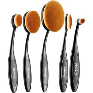 Generic - فرش مكياج بيضاوية، مجموعة 5 قطع، شعيرات صناعية كثيفة، تصميم فرشاة أسنان للتحكم السهل