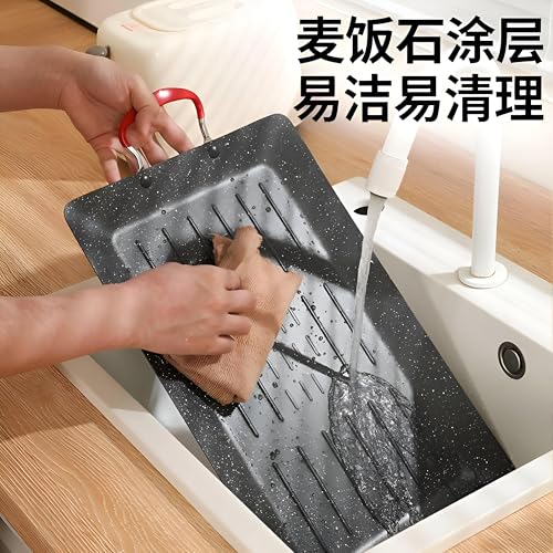 - توفر مقلاة الشواء المستطيلة الذكية هذه تجربة طهي صحية مع سطحها الجرانيت عالي الجودة غير اللاصق، مما يقلل من الحاجة إلى الزيت الزائد ويضمن سهولة إخراج الطعام، مما يجعلها مثالية لمجموعة متنوعة من الأطباق مثل اللحوم أو الدجاج أو الروبيان أو الخضار.