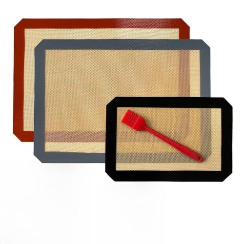 Generic - مفارش خبز سيليكون آمنة للاستخدام في الفرن - ثلاث قطع من مفارش للخبز المصنوعة من السيليكون لسهولة التنظيف والأداء الرائع في أي مطبخ. متعددة الالوان