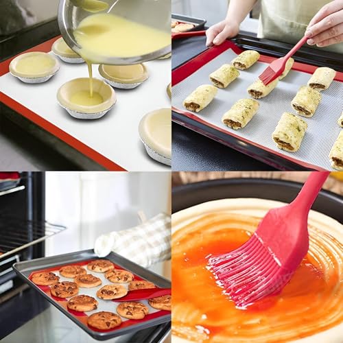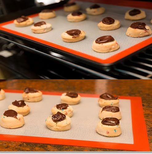 - ♪ ¡¾ مفرش خبز سيليكون مقاوم للالتصاق: نظرًا لسطحه المقاوم للالتصاق، تتيح صينية الخبز السيليكونية خبز البسكويت بالشوكولاتة والخبز المنزلي والكراميل اللاصق دون الحاجة إلى دهون أو زيت أو بخاخ أو زبدة، كما يمكن إعادة استخدامها.