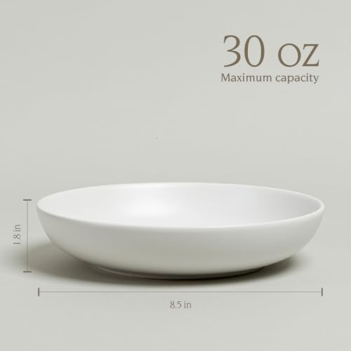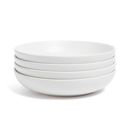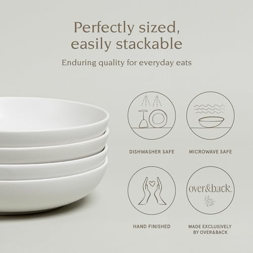 Over and Back - طقم بولات عشاء كوبيه من اوفر اند باك تأتي مع 4 أطباق فخار متعددة الاستخدامات سهلة التكديس مقاس 21.6 سم × 21.6 4.6 وزن 850 جرام لون أبيض مطفي مرة أخرى