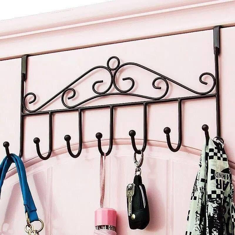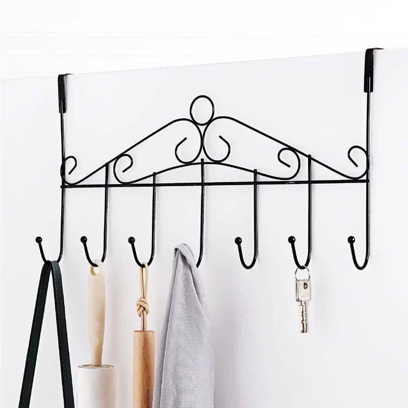Generic - شماعة باب مع 7 خطافات، خطاف معدني للمناشف فوق الباب رف تخزين معلق للقبعات والمعاطف والمحافظ والاوشحة والملابس والسترات والاحزمة وتناسب غرفة النوم والحمام والخزانة بلون اسود