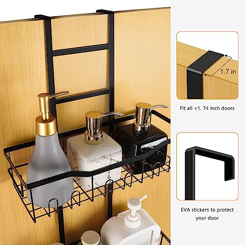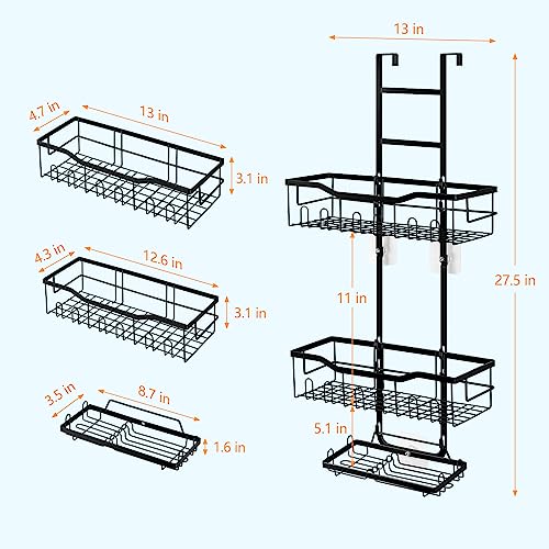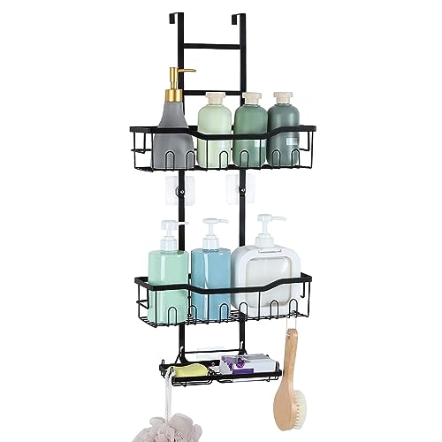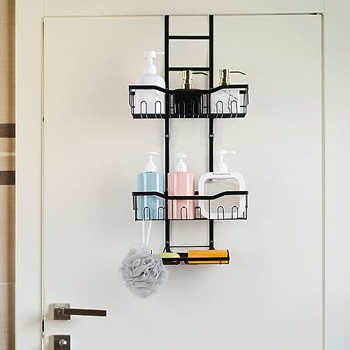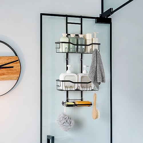 BTY - حامل دش فوق الباب رف منظم معلق من 3 طبقات للحمام مقاوم للصدا مع 2 صابون و12 خطاف سلة رفوف للسكن والاستحمام بدون ثقب