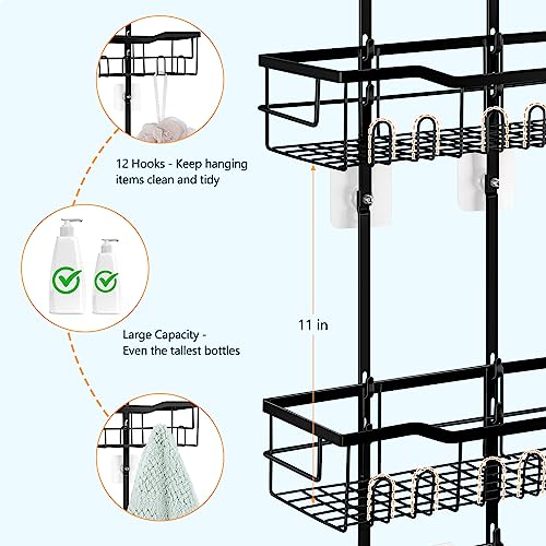 - 【تصميم ممتد وسعة كبيرة】 قمنا بتحسين المسافة بين الرفين وتمديدها إلى 11 انش حتى يمكن تخزين أطول زجاجات الشامبو وزجاجات غسول الجسم. مع 3 طبقات، يتميز منظم الدش الخاص بنا بسعة تخزين كبيرة لتلبية احتياجاتك.